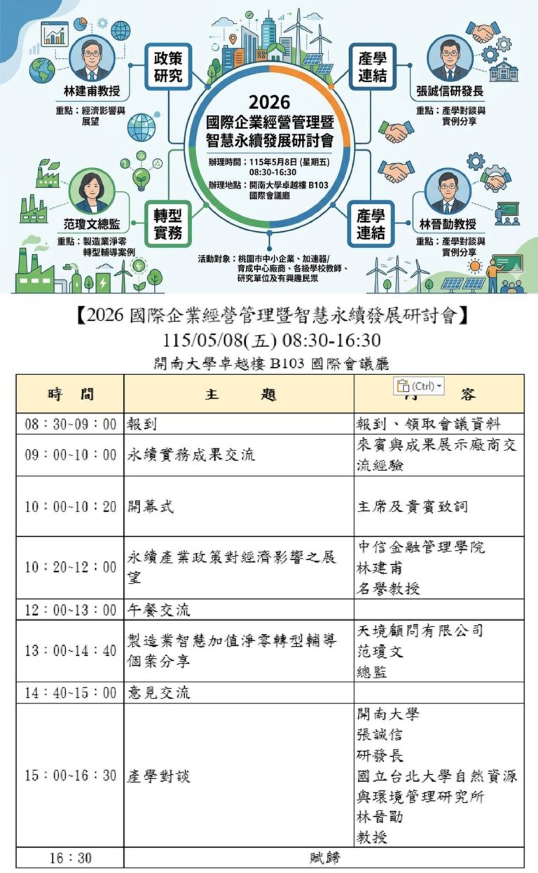 【活動通知】掌握永續商機:2026 國際企業經營管理暨智慧永續發展研討會即將登場
