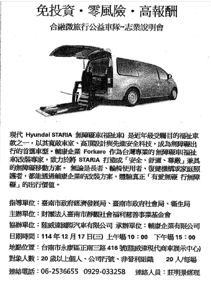 財團法人臺南市私立靜觀社會福利慈善事業基金會辦理「合融微旅行公益車隊~志業分享會」