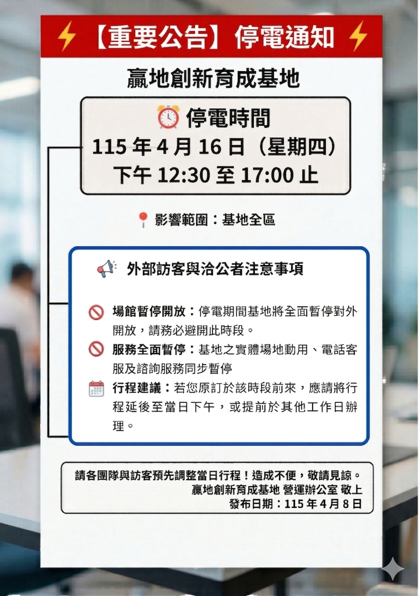 親愛的市民朋友與新創夥伴們,大家好: 為配合臺南市議會進行周 …